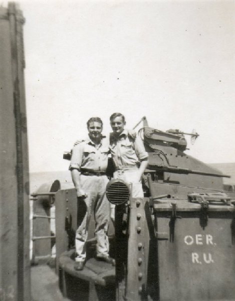 George is seen here with his mate Cpl Steve Sadler who is on the right. This was taken in Sidney while the ship was in dock, and they were stationed ashore.They were issued with khaki battledress when they were posted to Combined Ops but still retained their R.A.F. uniform.