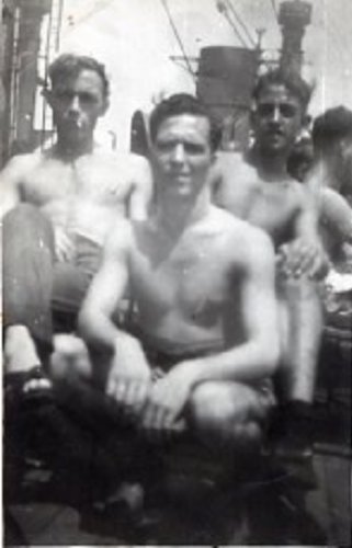 We think Ted Handford might be the one peering over heads at the back anf Richard Greenwell is furthest left. Here are some Photos with Kenneth (Ken) Shuker - Able Seaman Stoker.