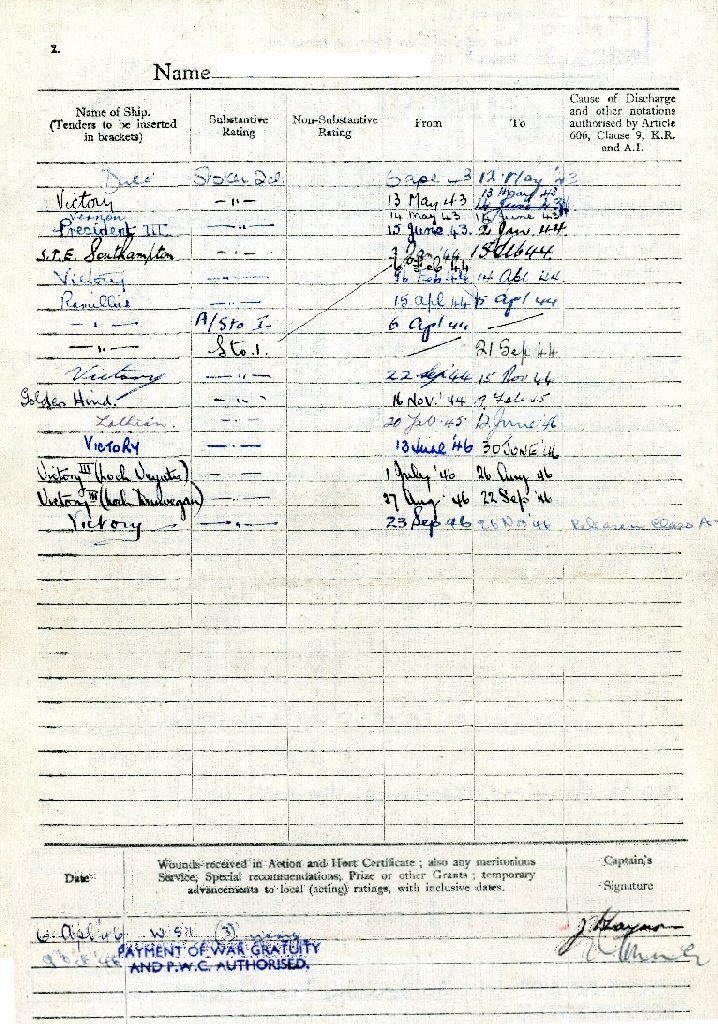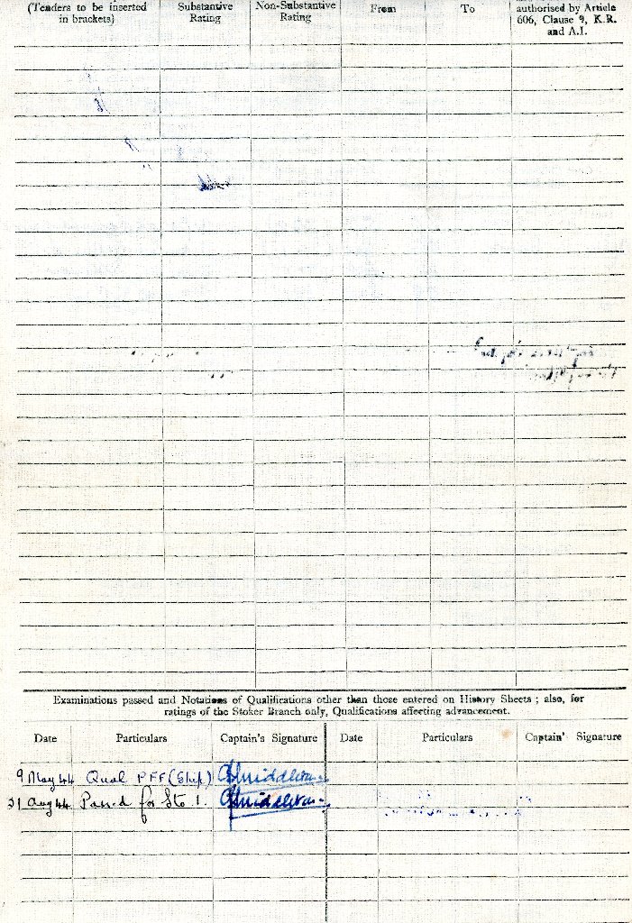 4th May 1945 - 12th June 1946 (promoted to Temporary Acting Leading Stoker)