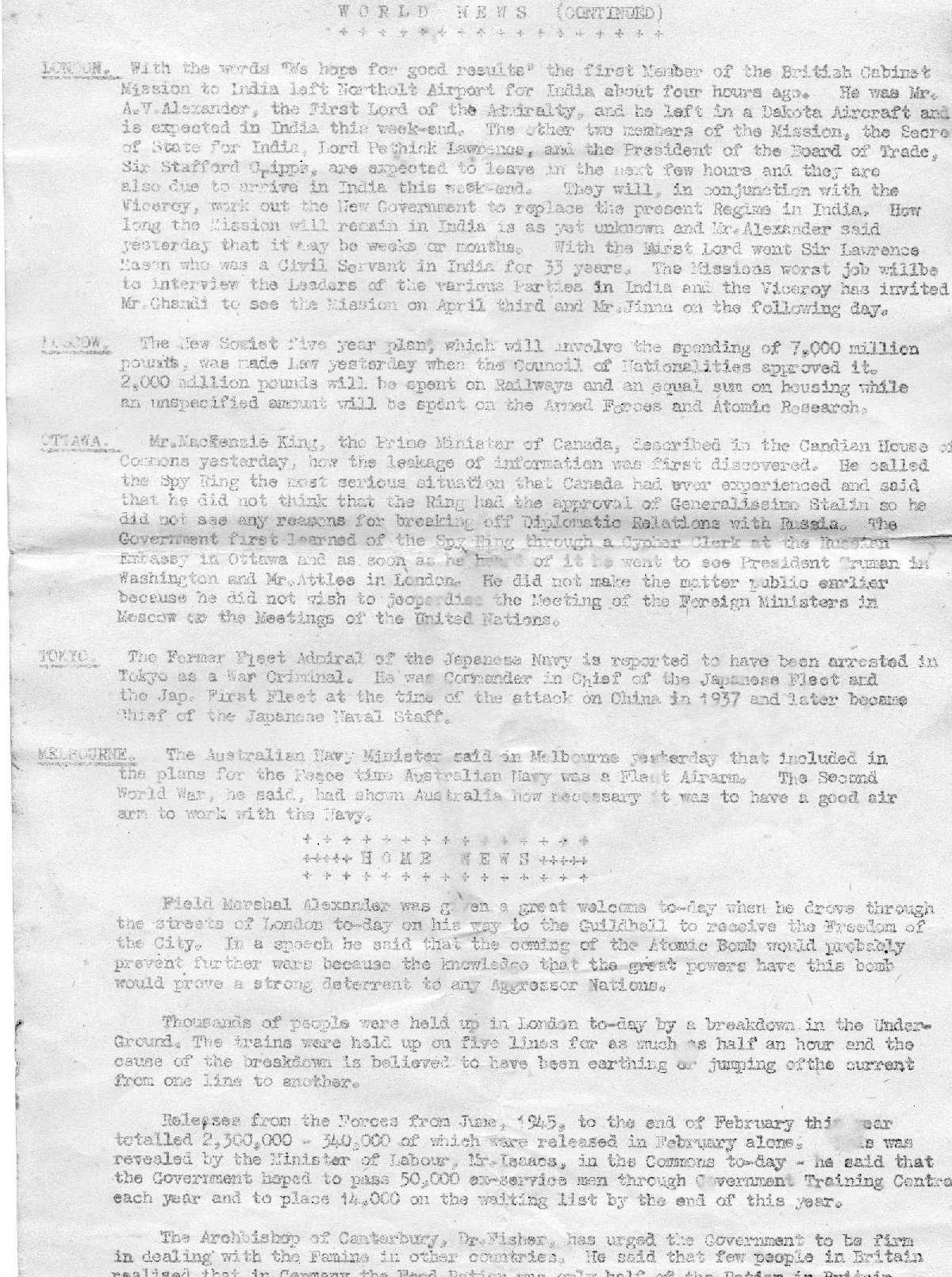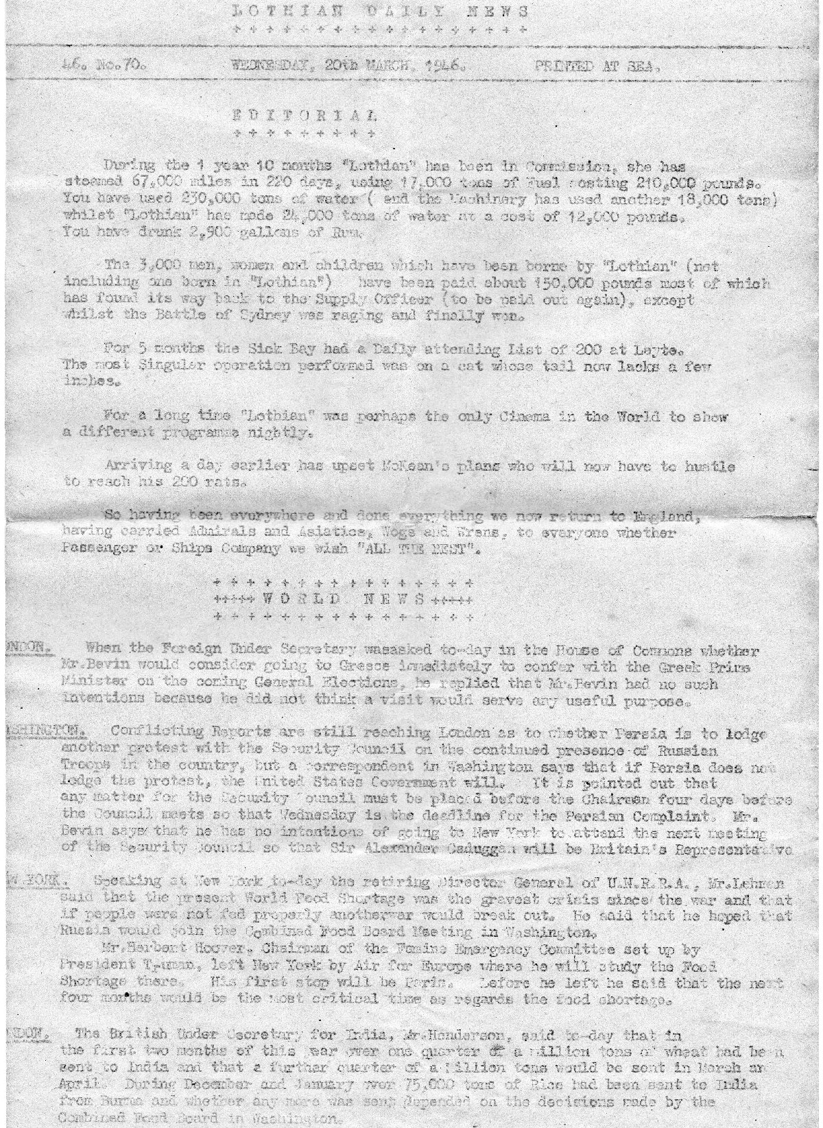 H.M.S. LothianDaily News March 20th 1945