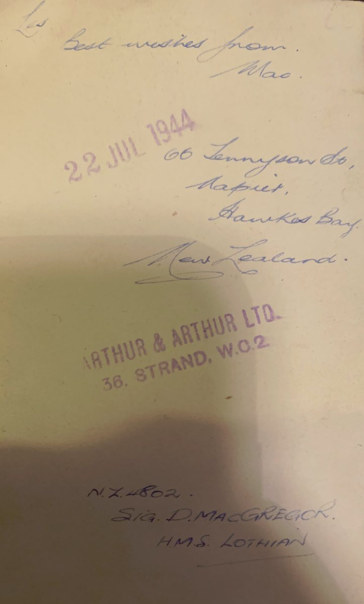 As the sender Cliff, says this is a bit of a mystery as the Lothian was in Brisbane Oct 15th until Nov 11th in 1944 and in Solomon Islands from Dec 8th until Jan 1st?